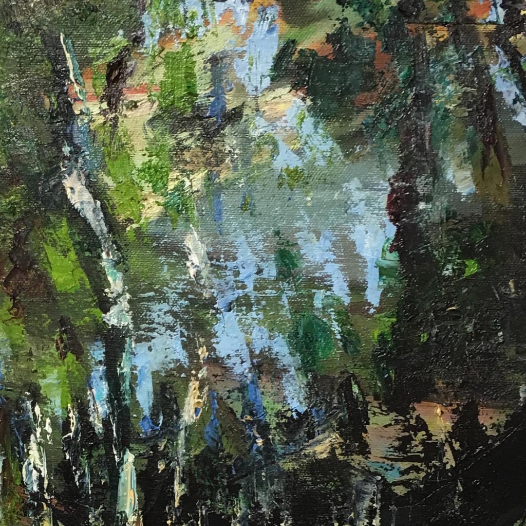 weerspiegeling bomen 100X100cmwandeling